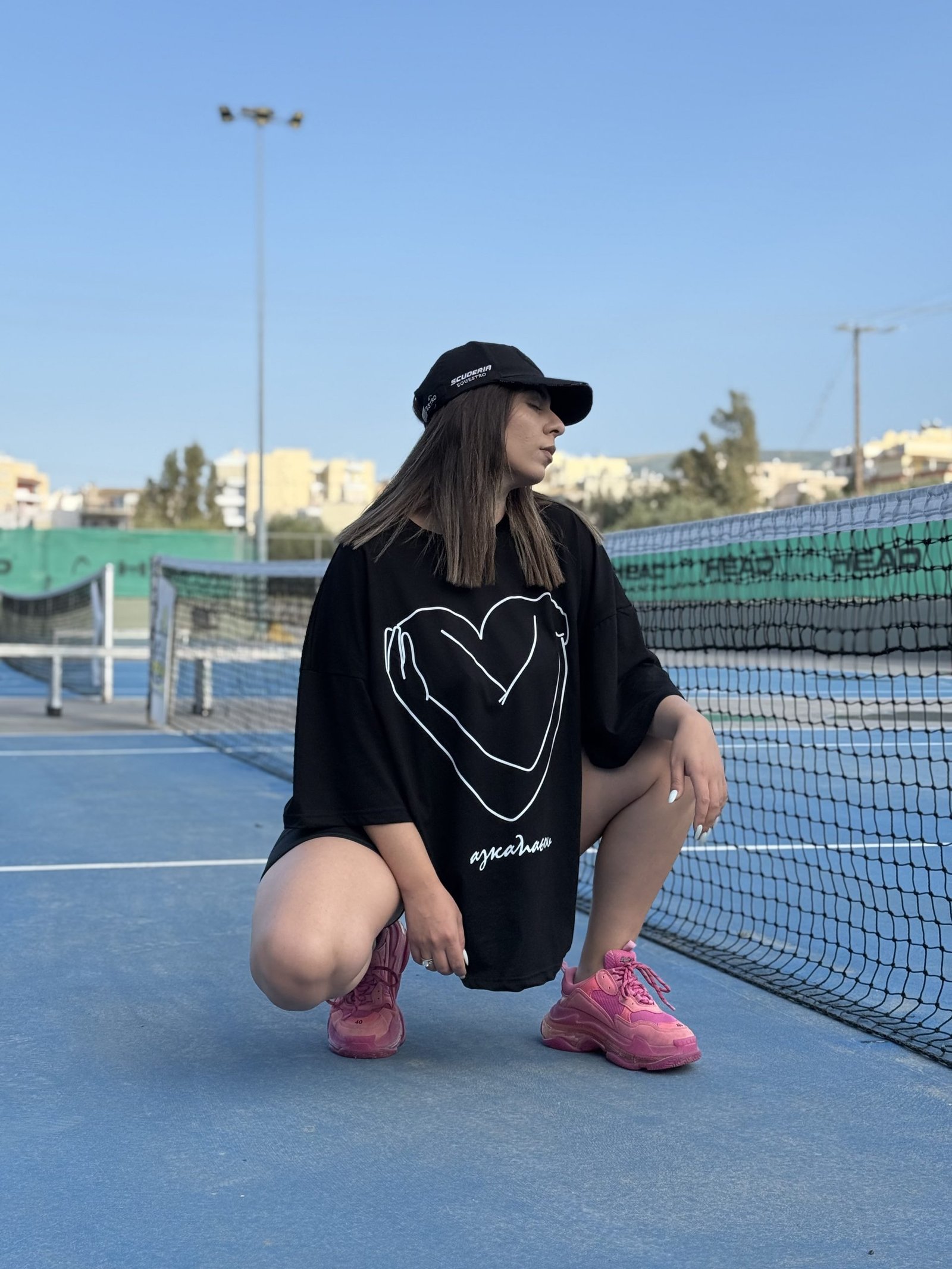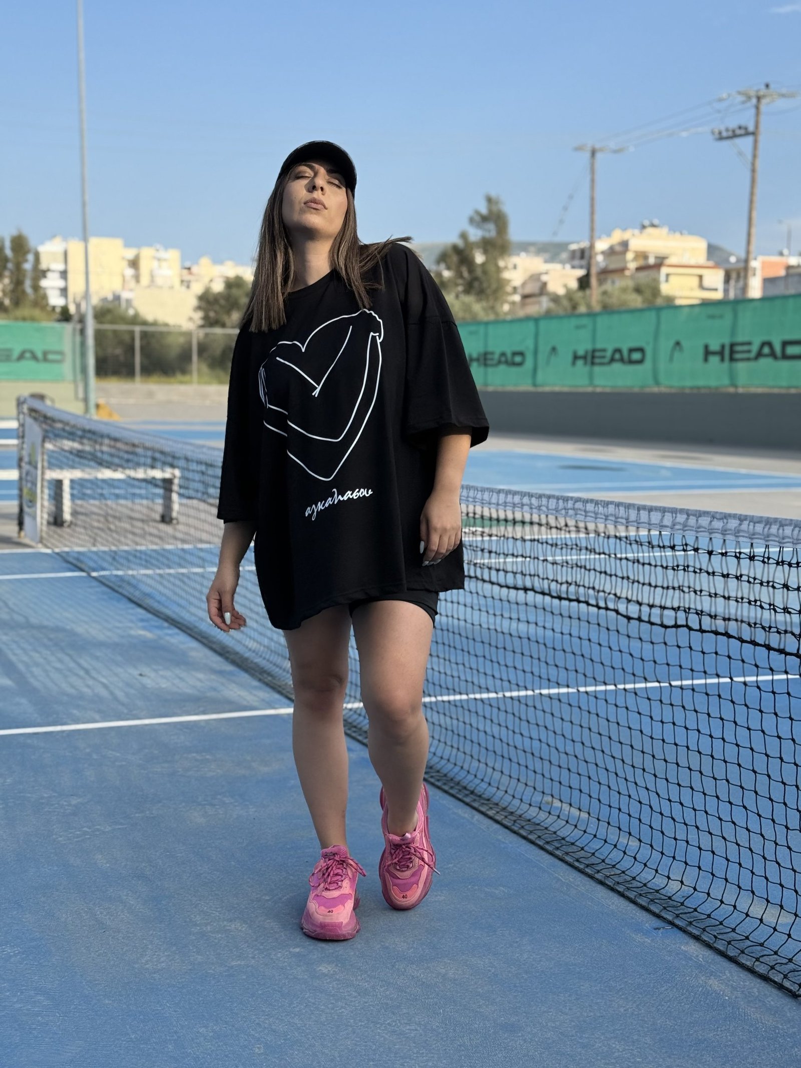 Άνετο, δροσερό και ευέλικτο. Το oversize T-shirt “Αγκαλιάσου” είναι σχεδιασμένο για να προσφέρει απόλυτη ελευθερία κινήσεων και στυλ.