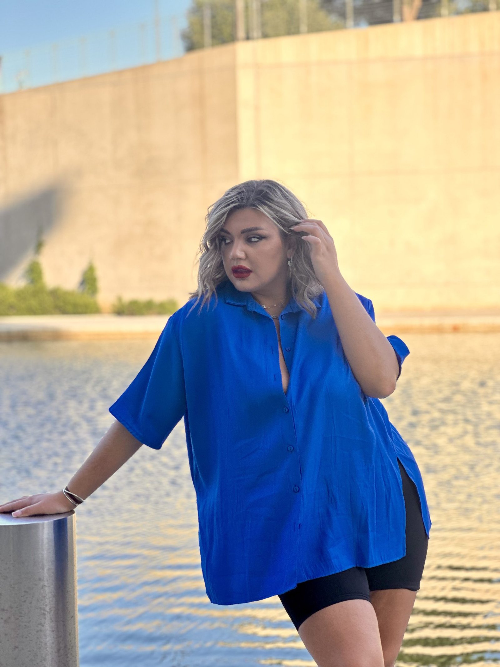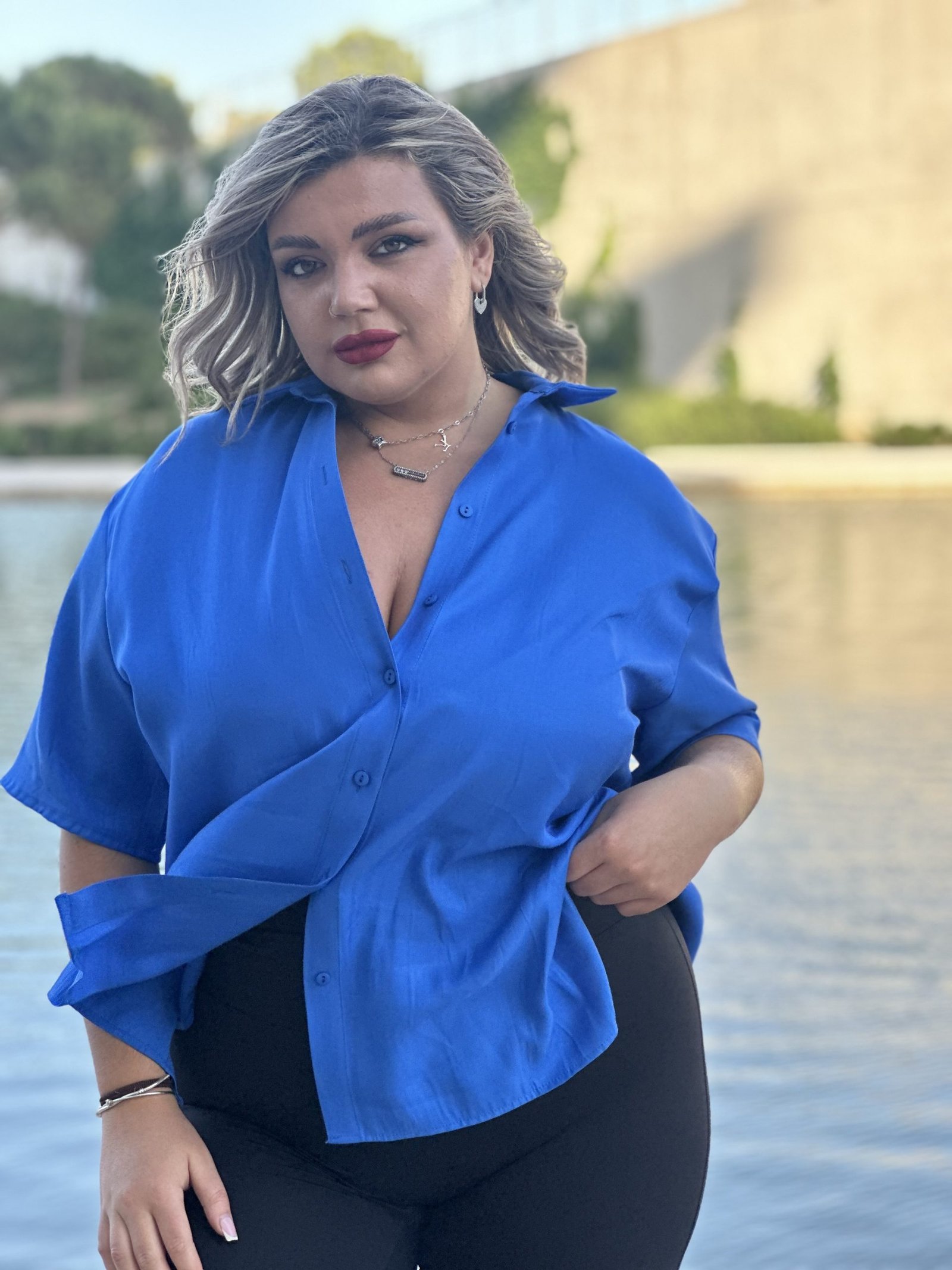 Αέρινο και κομψό, το “bold in Blue” Oversized Πουκάμισο είναι η τέλεια επιλογή για κάθε εμφάνιση — από το γραφείο μέχρι τη βόλτα.