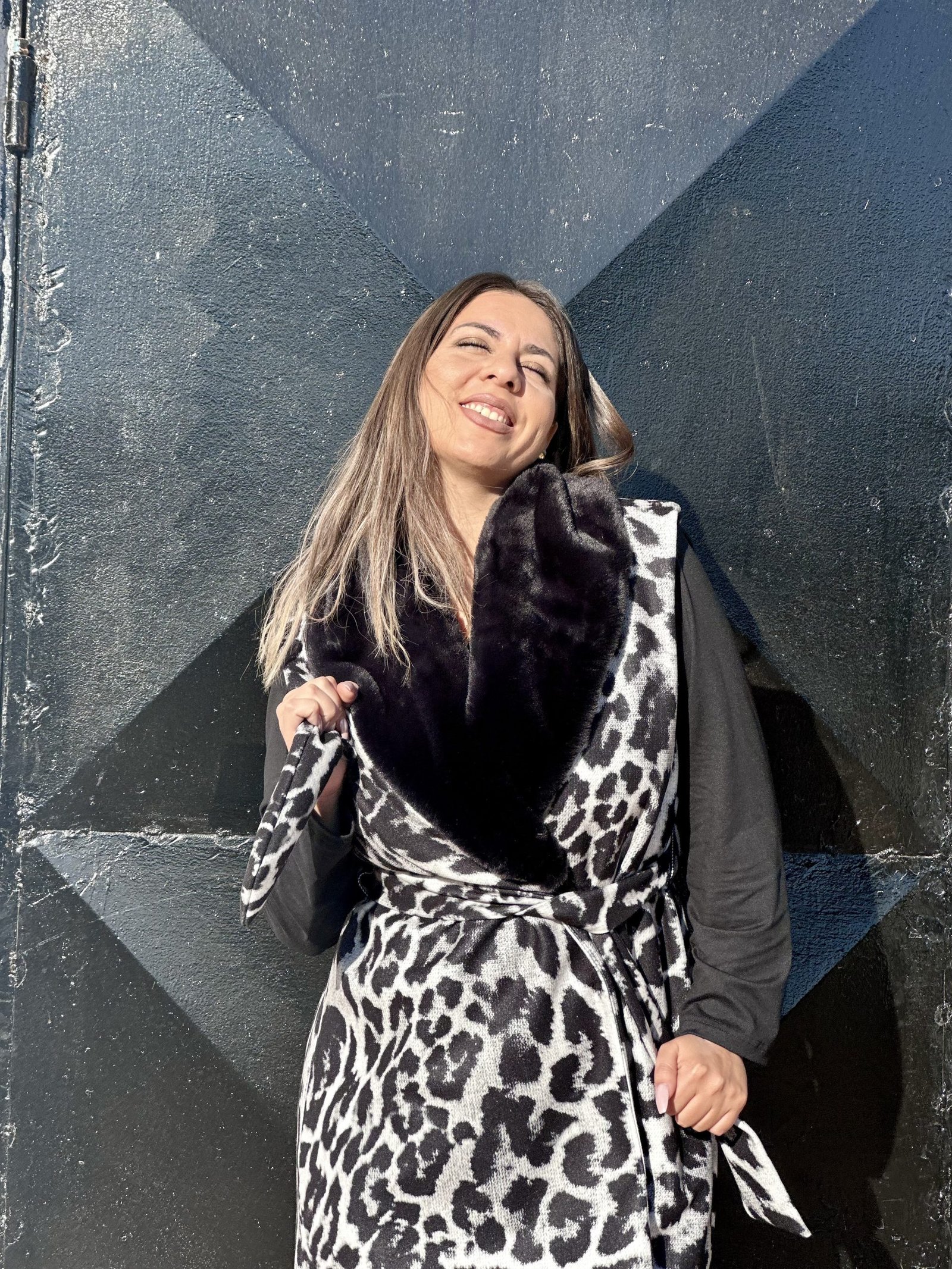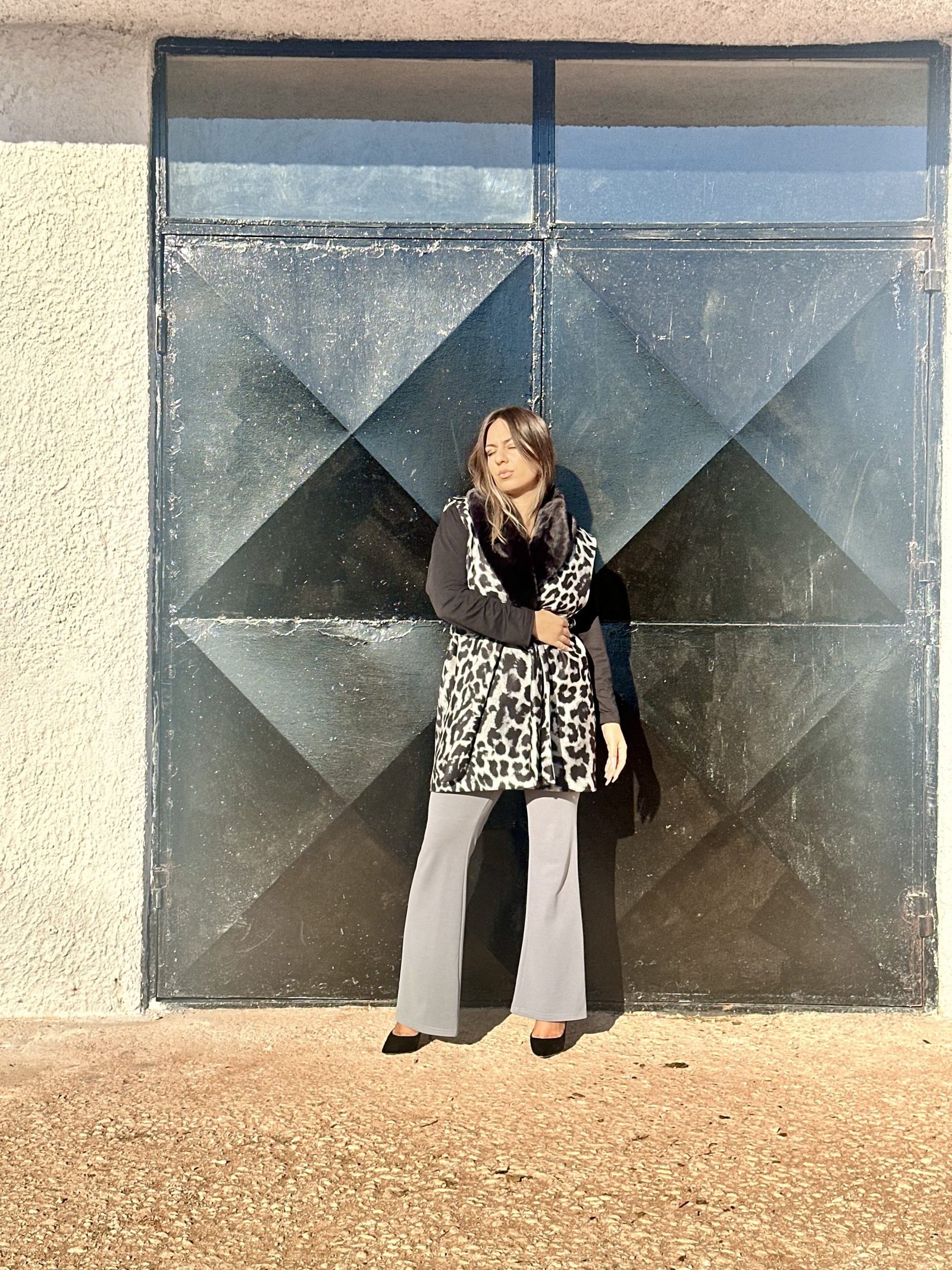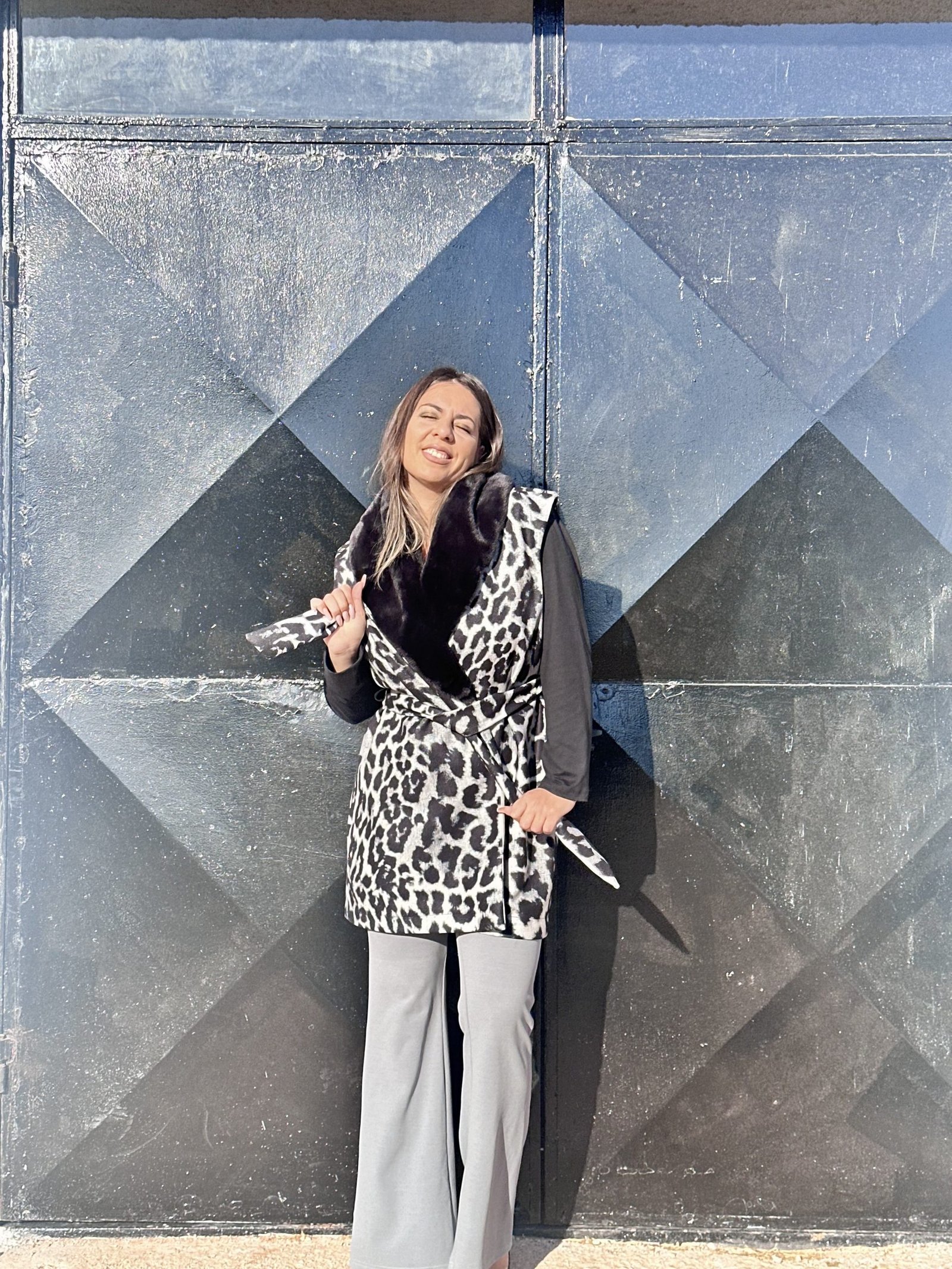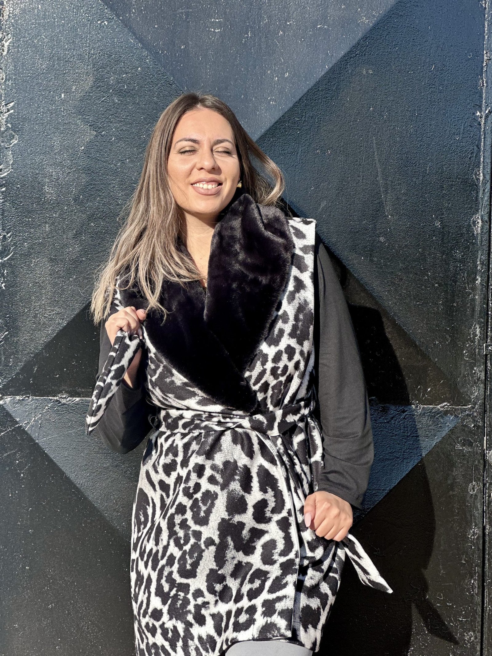Λεοπάρ ασπρόμαυρο γιλέκο με eco απαλή γούνα στον γιακά. Ανετο , ζεστό και πανω απο ολα ενα τεμάχιο που μπορει να αναβαθμίσει το πιο απλό σου outfit.