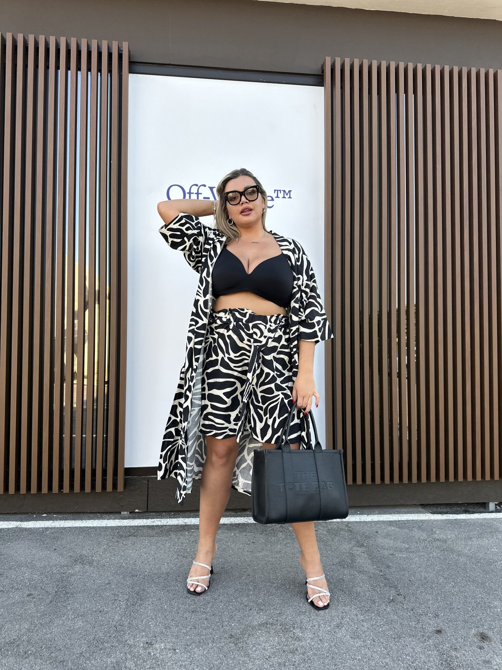 Το κιμονό προσφέρει ανάλαφρη εφαρμογή και στυλ που ταιριάζει σε κάθε περίσταση , ενώ η ψηλομεση βερμούδα με λάστιχο στη μέση εξασφάλιζει άνεση και τέλεια εφαρμογή σε κάθε σωματότυπο